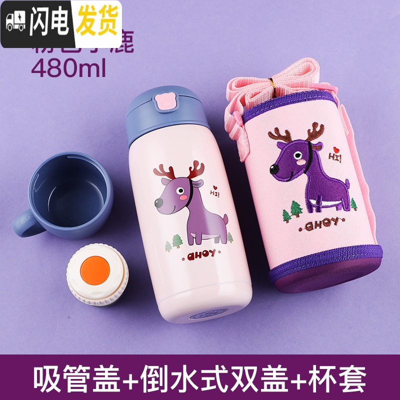 三维工匠儿童保温杯带吸管小学生杯子卡通男童小女孩幼儿园可爱迷你水杯 粉色小鹿/480ml¥91.00热销中