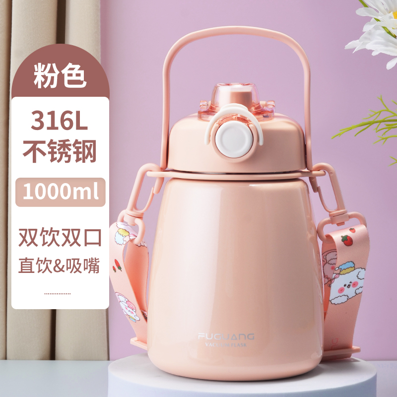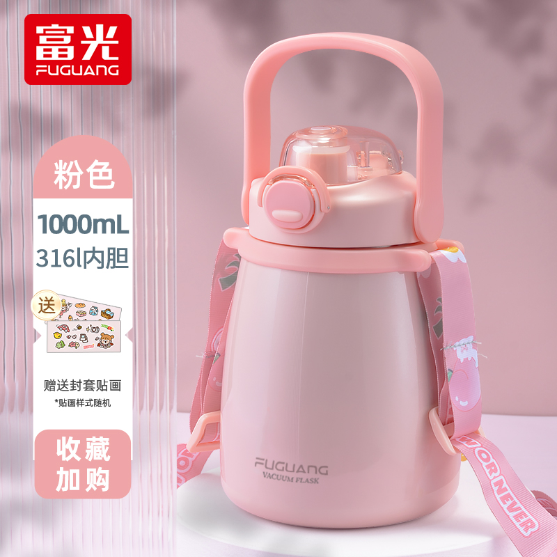 富光大肚保温杯女士款大容量316L食品级不锈钢正品儿童水杯高颜值 粉色1000ml双饮双口+316L不锈钢内胆+背带 均码¥89.00热销中1评价 100.0%好评