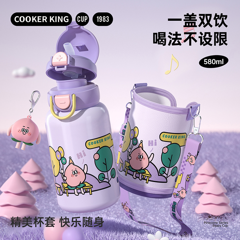 炊大皇儿童保温杯双饮316不锈钢保温水杯小学生带吸管杯杯套便携水壶 紫色(假日乐园会)(杯套款) 默认尺寸¥75.90热销中