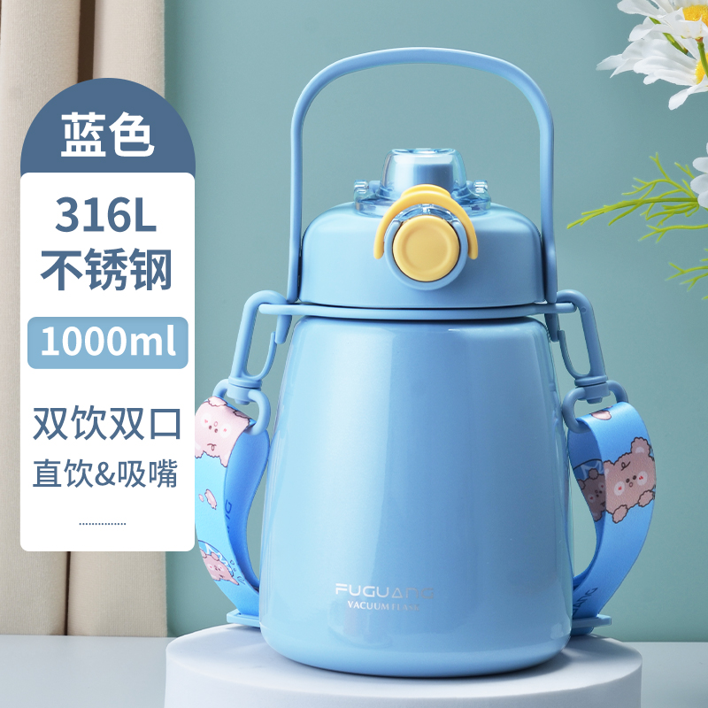 富光大肚保温杯女士款大容量316L食品级不锈钢正品儿童水杯高颜值 蓝色1000ml双饮双口+316L不锈钢内胆+背带 均码¥89.00热销中1评价 100.0%好评