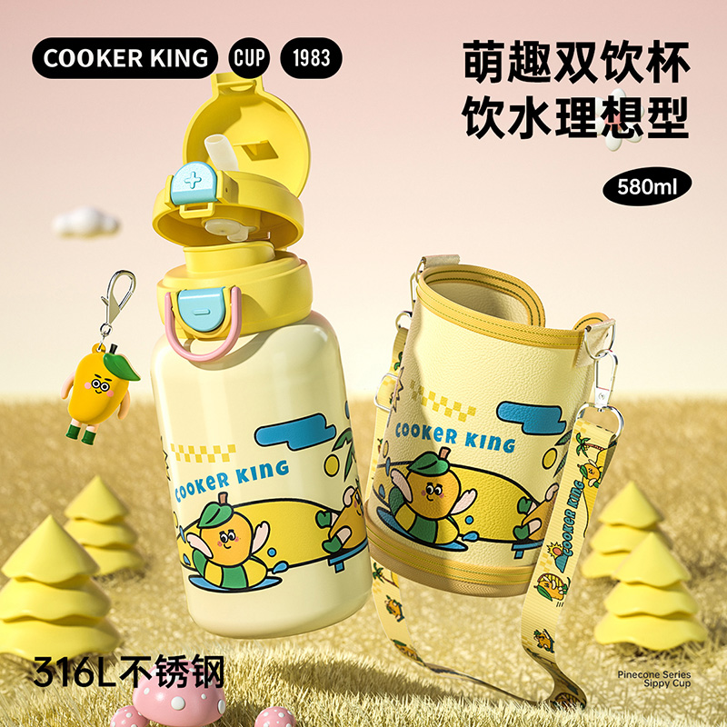 炊大皇儿童保温杯双饮316不锈钢保温水杯小学生带吸管杯杯套便携水壶 黄色(缤纷泳池趴)(杯套款) 默认尺寸¥75.90热销中