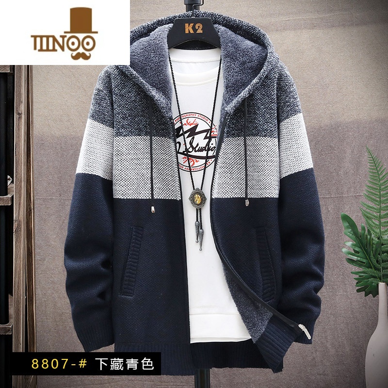 YANXU冬季针织衫男士开衫外套加绒加厚连帽拼色毛衣男外搭衣服外穿毛衣 170/L125-140斤左右 8807藏青色满69元减1元¥122.00热销中