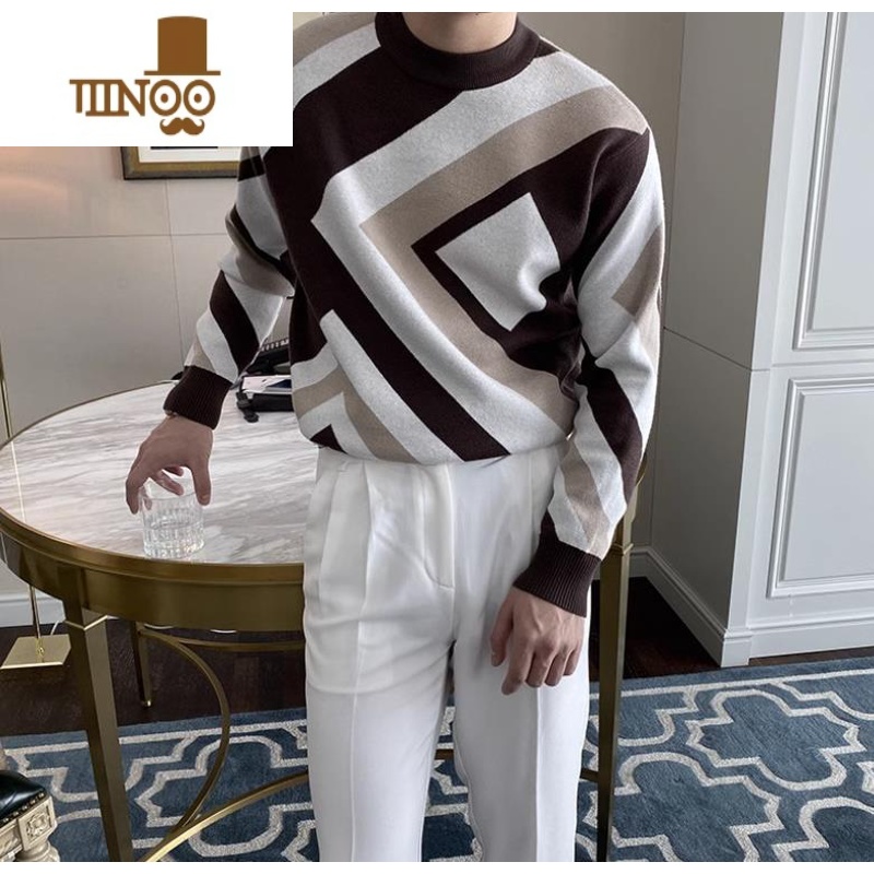 YANXU2023新款韩版毛衣男几何撞色个性潮流宽松针织衫打底上衣潮Y L建议110-130斤 咖色满69元减1元¥155.00热销中