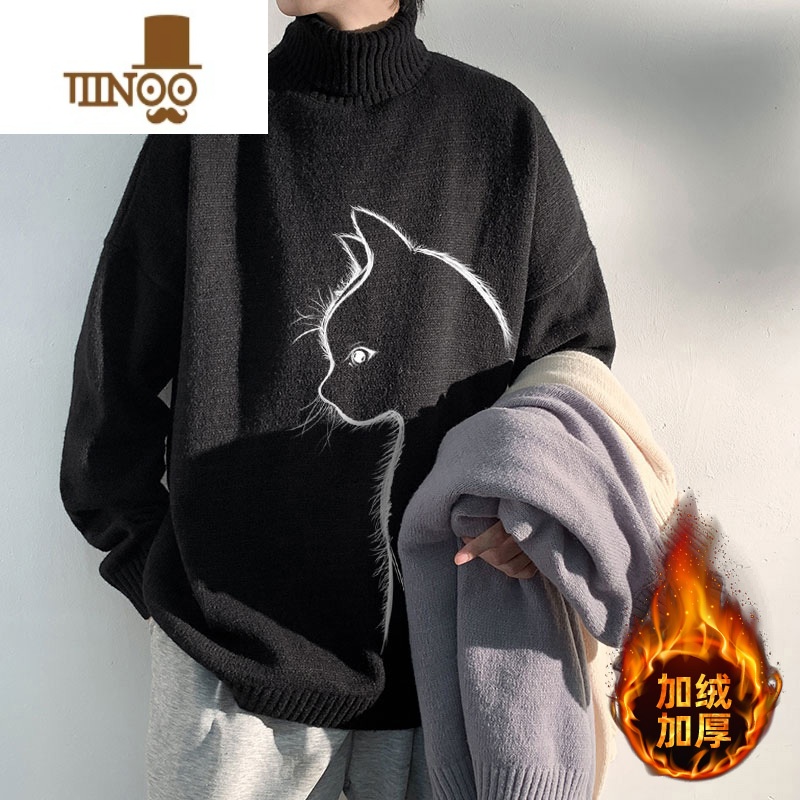 YANXU黑色保暖针织毛衣男士冬季加厚宽松大码上衣加绒慵懒风学生打底衫 M推荐95-110斤穿着 黑色(高领)¥158.00热销中