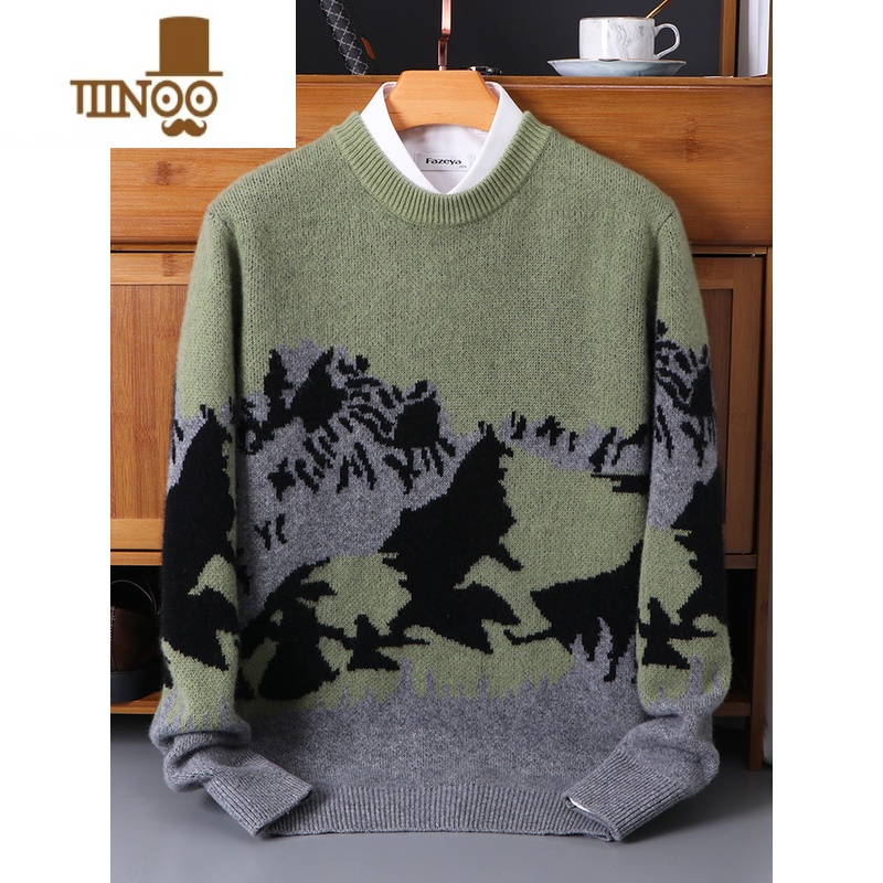 YANXU绒衫男圆领套头加厚毛衣抽象时尚休闲毛衫宽松打底针织衫 2XL155-170斤 绿色满69元减1元¥374.00热销中