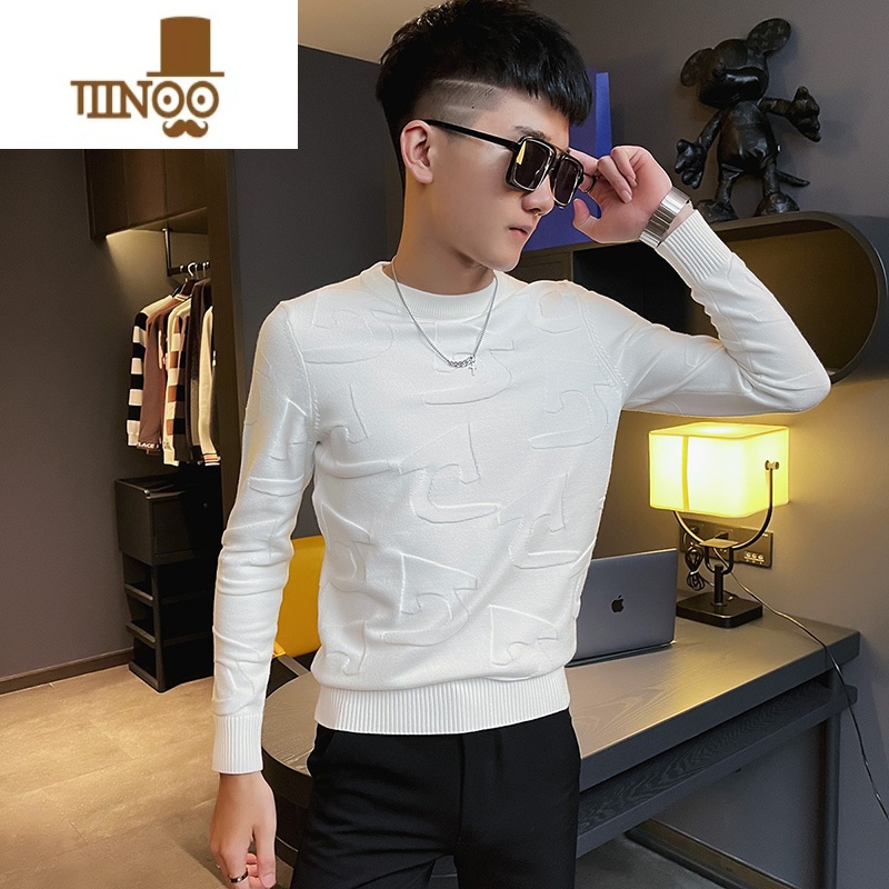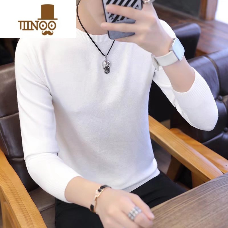 YANXU长袖针织衫男秋季薄款男士套头打底衫线衣修身薄毛衣青年上衣线衣 4XL 白色圆领毛衣满69元减1元¥54.00热销中