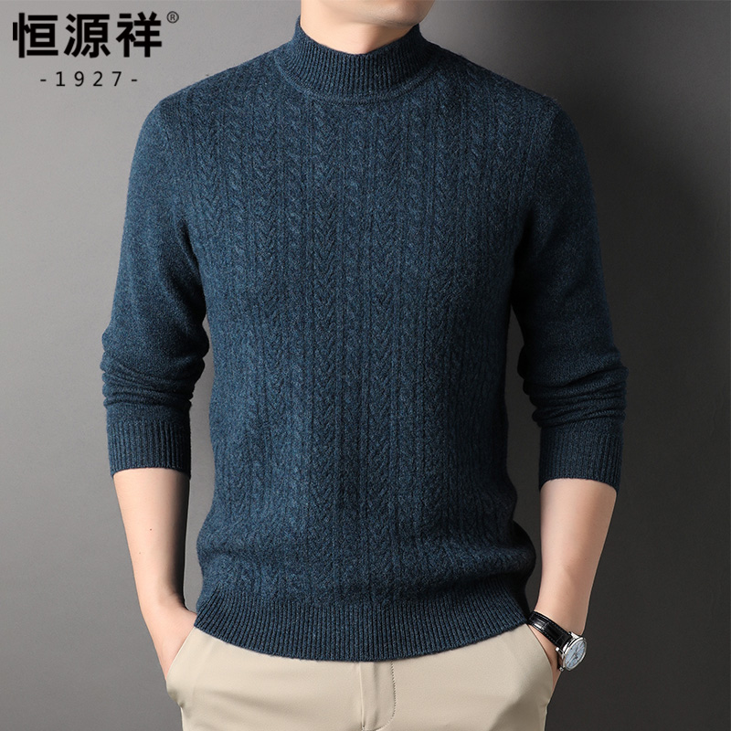 恒源祥半高领羊毛衫男士休闲圆领毛衣打底衫秋冬爸爸装2024新款 170/L 哈青领券每200用20¥605.00热销中