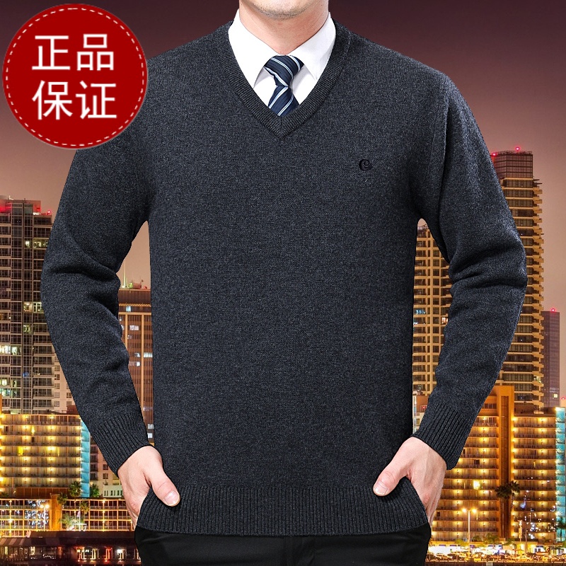恒源祥毛衣男冬季新款V领100%羊毛中年爸爸装宽松保暖针织打底V 175适合140-155斤 3015青驼灰领券每200用20¥626.00热销中