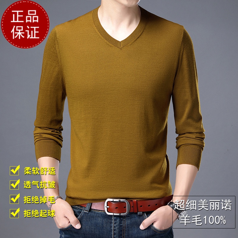 免费试穿鄂尔多市精纺超细美丽诺100纯羊绒衫男V领薄款毛衣中青年打底衫打底100纯羊毛衫 165/M(适合100-120斤) 秋香黄满3件打9.8折¥388.00热销中2评价 100.0%好评