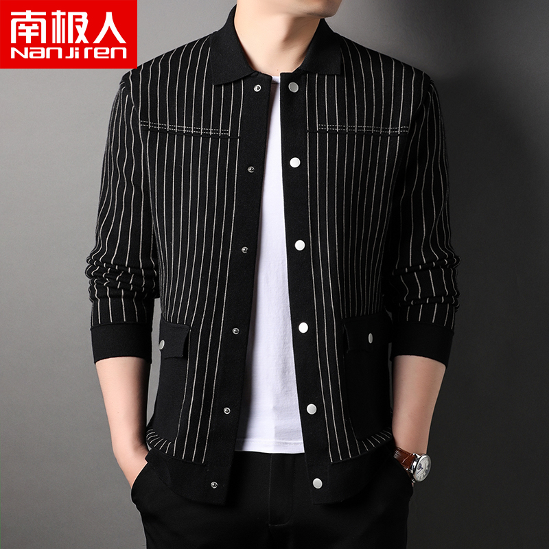 南极人男士针织开衫翻领夹克秋季休闲男装外套双口袋按扣条纹毛衣 L 黑色领券每200用20¥321.00热销中