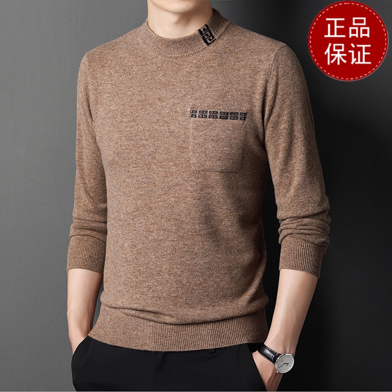 2021新款羊绒衫男秋冬季毛衣男圆领口袋装饰提花宽松100%羊毛衫男士针织衫打底100纯羊 2XL 深驼满3件打9.8折¥398.00热销中