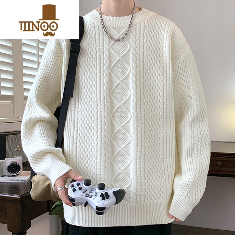 YANXU提花圆领毛衣男冬季潮牌感针织衫男宽松休闲加厚保暖毛衫外套 2XL约140-155斤可穿 6231白色满69元减1元¥142.00热销中