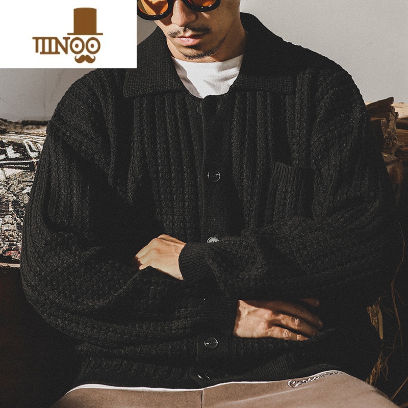 YANXU日系慵懒风开衫针织外套男秋季感男装设计感oversize情侣毛衣 L 黑色¥160.00热销中