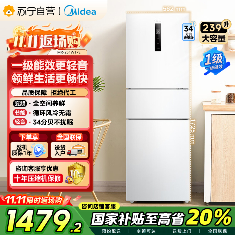 美的三门冰箱MR-283WTPZE极地白每2699元减300元¥2699.00热销中261评价 99.0%好评