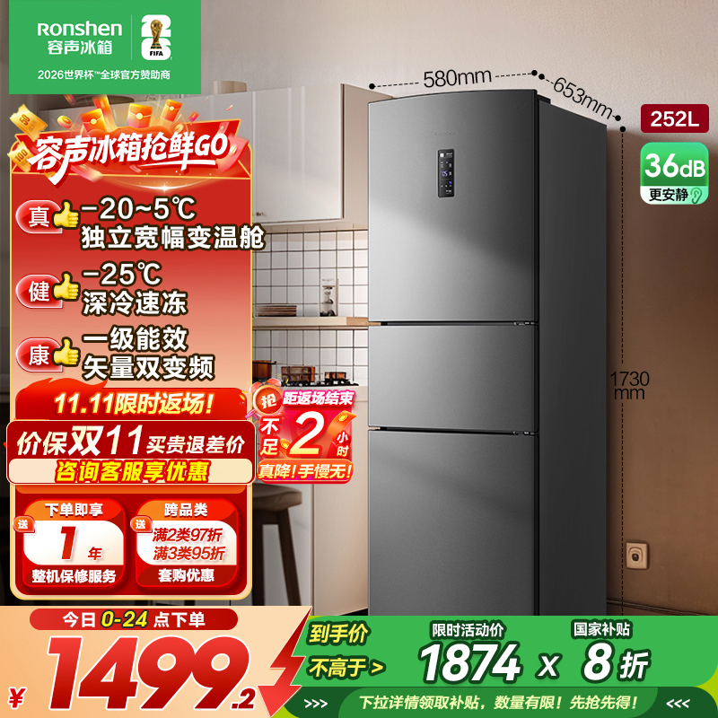 自营 容声冰箱BCD-252WD18NP¥1874.00月销量1207327评价 99.0%好评 -