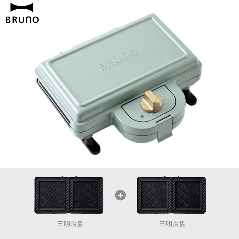 日本bruno莫斯哥蓝Plus轻食机早餐机家用多功能三明治华夫饼烤面包机标配(三明治盘x2)