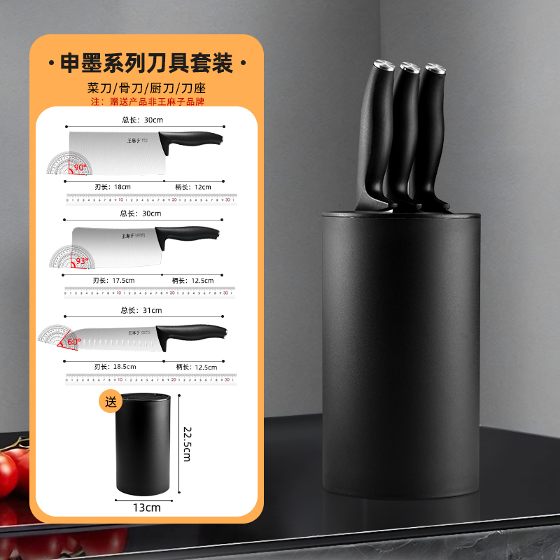 申墨系列·壹 刀具套装 王麻子丨申墨壹三件套【送刀座+菜板】¥130.00热销中