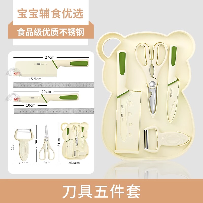 德国婴儿辅食刀具套装菜刀菜板二合一宝宝辅食工具全套刀X8169 1【升级防锈】小老虎收纳菜板五件套【送刀套】¥38.80热销中