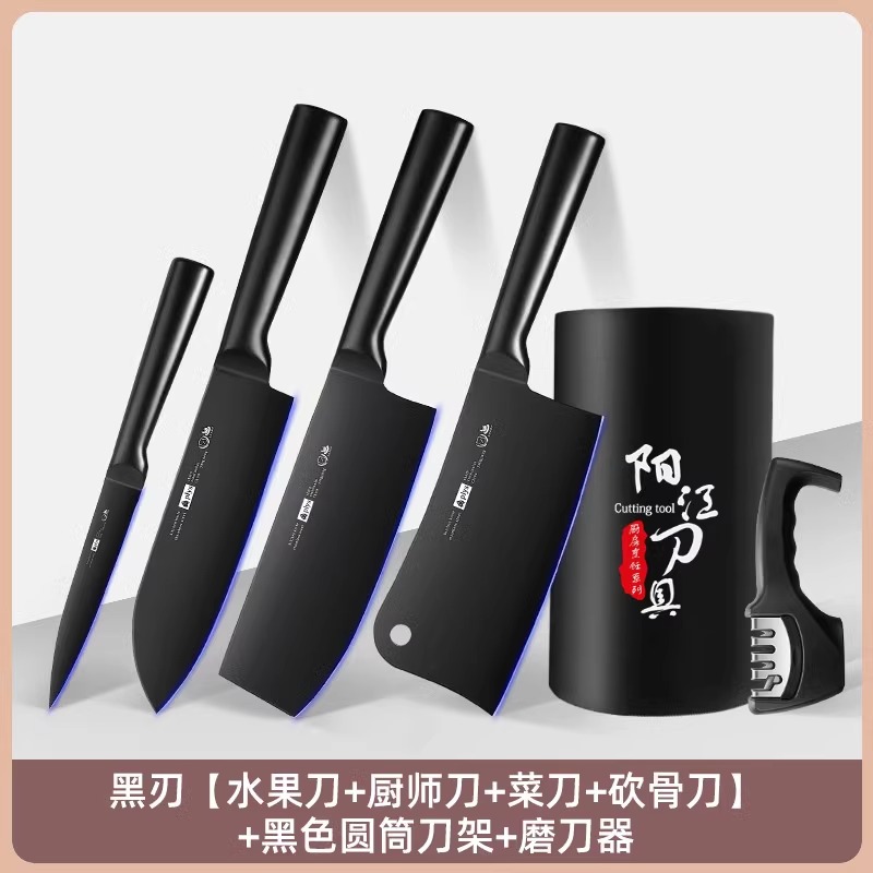 厨房刀具套装锋利菜刀不锈钢组合厨师厨具切片全套骨刀切菜刀家用X8169 2黑刃四件套+刀架+磨刀器¥98.80热销中