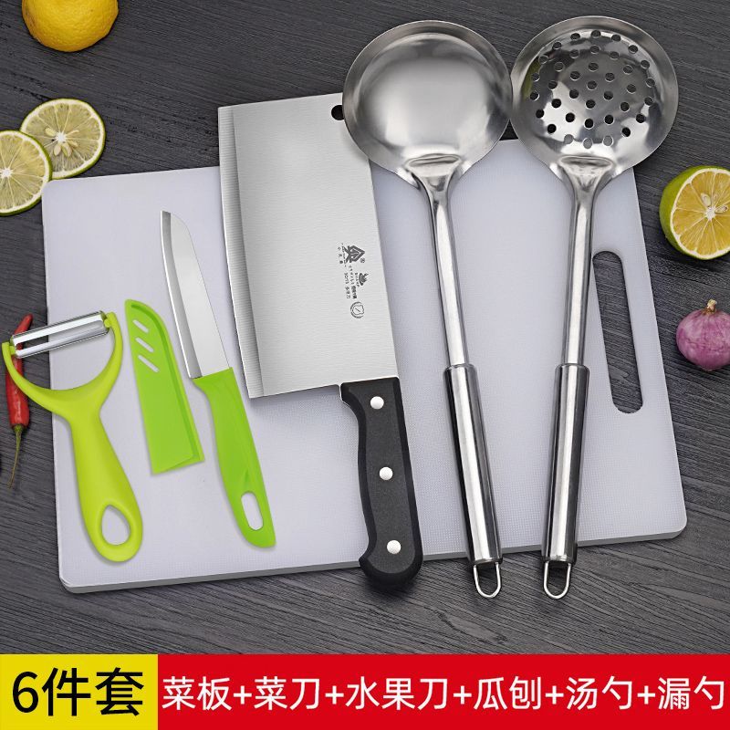 菜刀菜板二合一厨房刀具套装砧板组合家用宿舍用全套厨具Y8169 5PE菜板菜刀漏勺4件套【赠绿果刀刨】¥29.50热销中