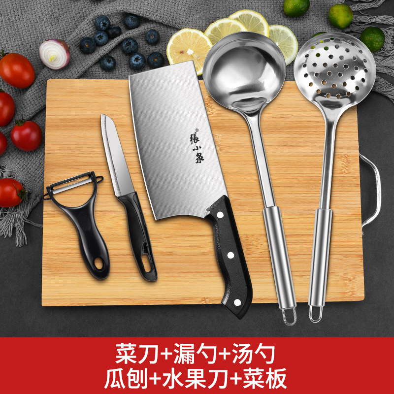张小泉刀具套装菜刀菜板二合一厨房家用切菜刀宿舍砧板厨具组合8138 家庭烹饪五件套¥99.00热销中