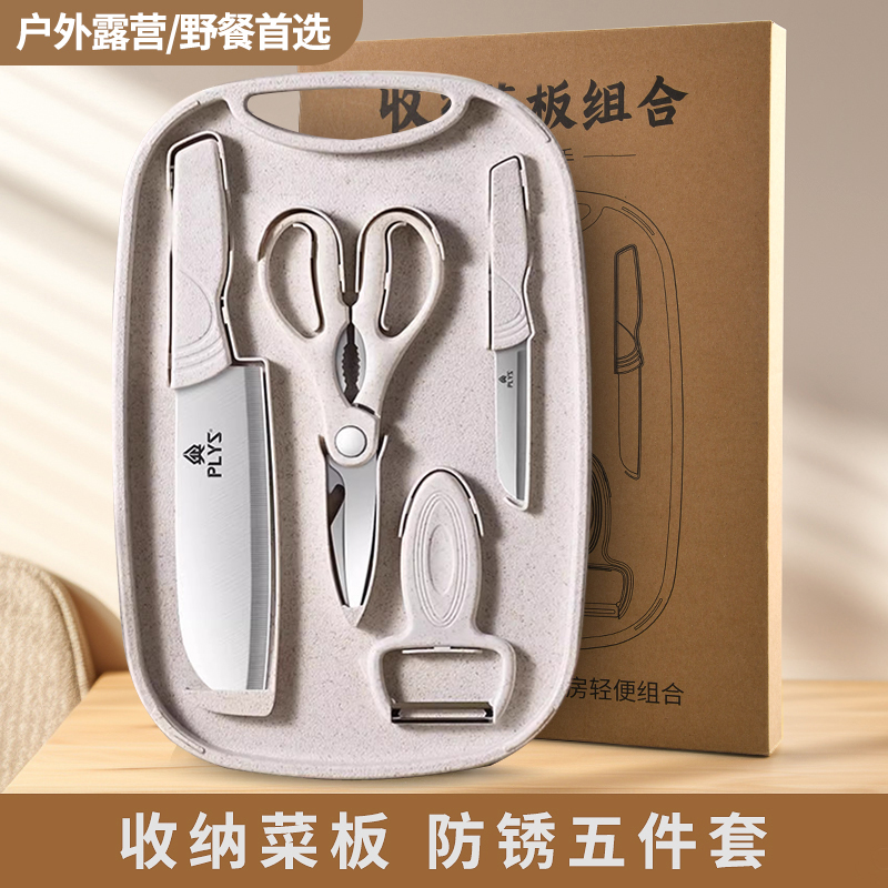 可收纳家用婴儿辅食专用刀具套装案板菜刀宿舍全套装W8169 【五合一】小麦亮面-收纳五件套¥26.80热销中