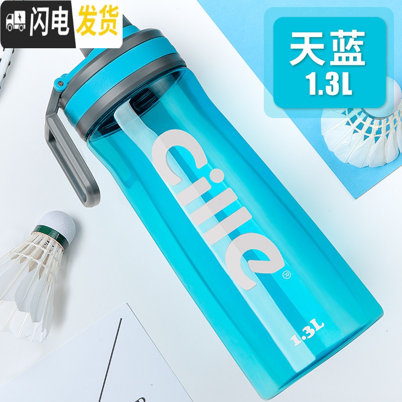 三维工匠超大容量水杯便携塑料杯子简约运动健身水壶大号太空杯男茶杯_554 XL-1611蓝色1300ML有茶隔 默认尺寸¥39.00热销中 -