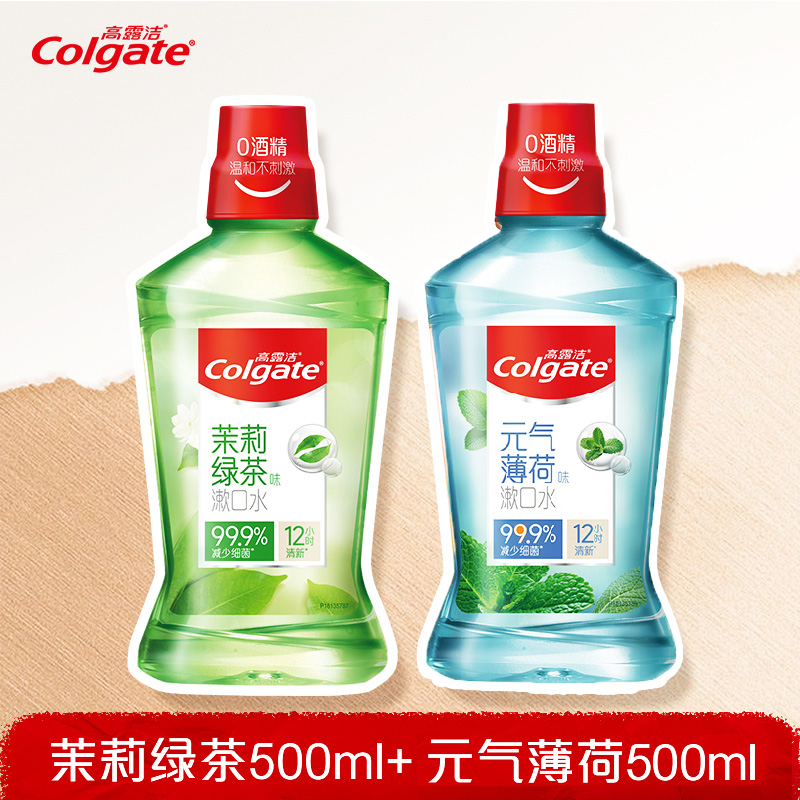 自营 高露洁漱口水清洁含氟孕妇可用清新口气滋润口腔男女生防蛀温和0酒精500ml*2瓶(茉莉绿茶+冰爽薄荷)¥39.90热销中725评价 99.0%好评