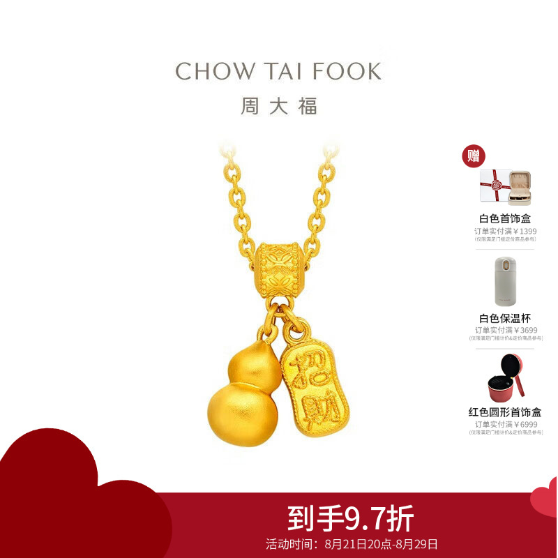 周大福传承寓意招财纳福葫芦黄金项链计价(工费620)F235856 40cm8.10g¥10080.80热销中