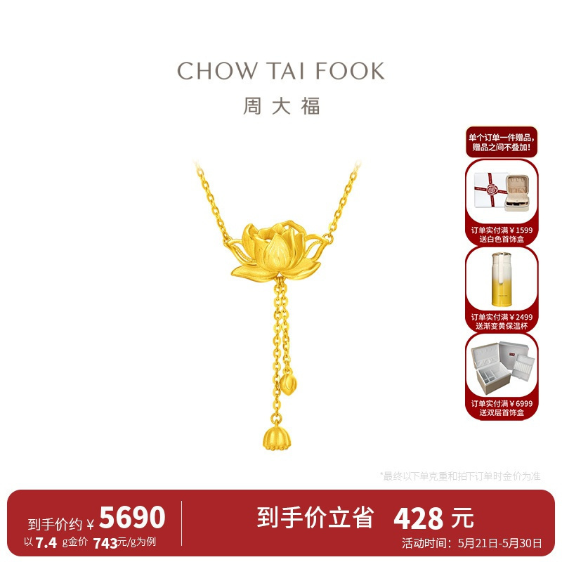 周大福 荷花足金黄金项链吊坠(工费620)计价 EOF1149 45cm约7.45g满1件打9折¥9321.60热销中