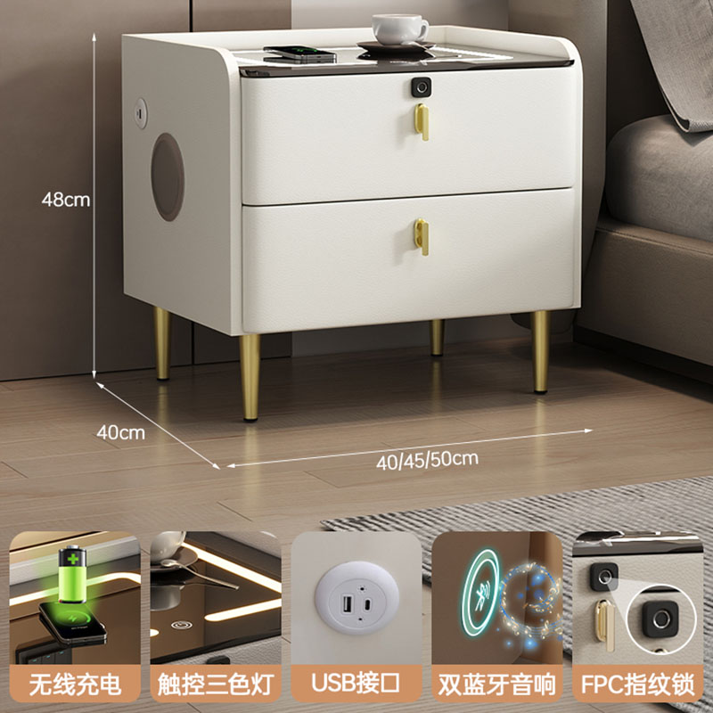 布欧格实木智能床头柜家用 【智能款】奶白色+无线充+三色灯+USB+双音响+指纹锁 50x40x48cm满3000元减100元¥479.00热销中