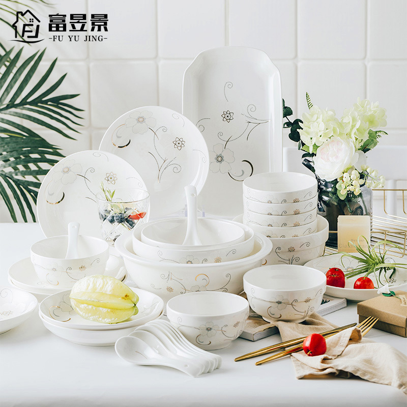 景德镇欧式骨瓷餐具套装高档碗碟套装 家用简约中式陶瓷餐具套装 FENGHOU 芝兰玉树花篮(可微波)¥81.00热销中 -