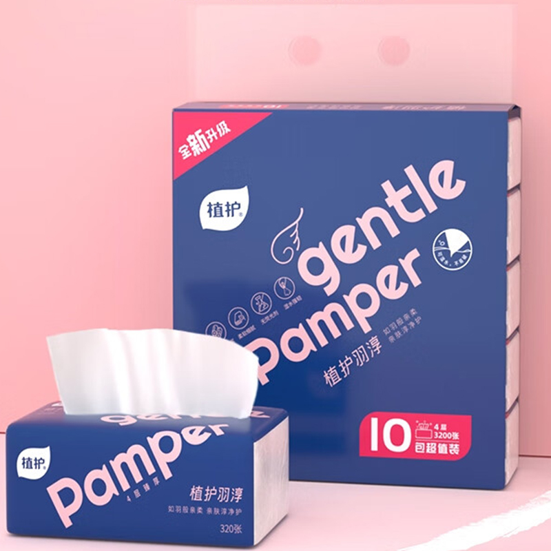 植护 羽淳系列原木抽纸 128*175mm/4层 80抽 10包/提