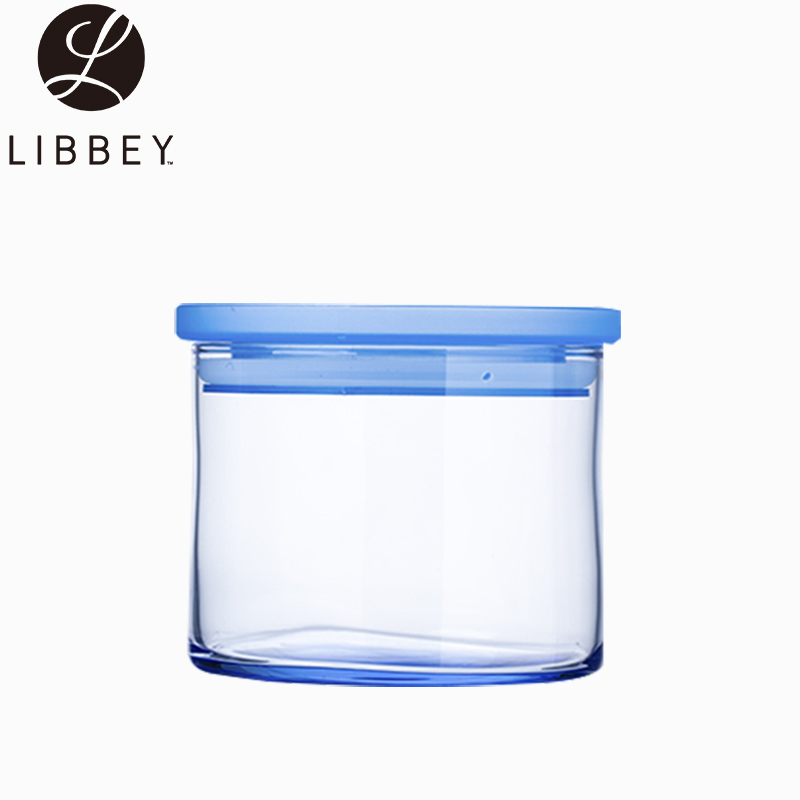 自营 Libbey利比 可叠放幻彩蓝玻璃密封罐密封瓶储物罐奶粉瓶茶叶罐调味罐450ml单支装