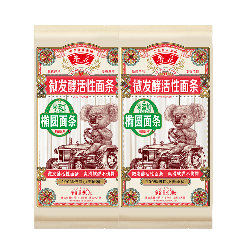 自营 鲁花考拉椭圆面条900g*2 挂面经典六艺活性面条易煮爽滑麦芯面条易消化挂面龙须面 900g*2 原味¥39.90热销中