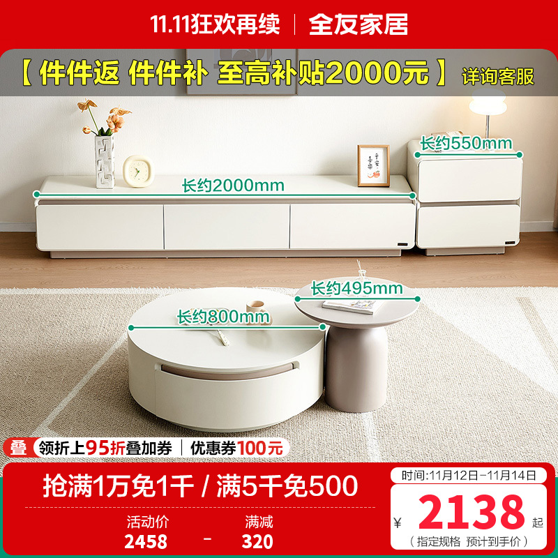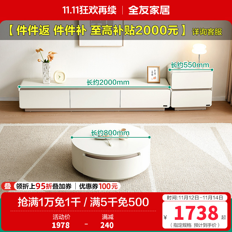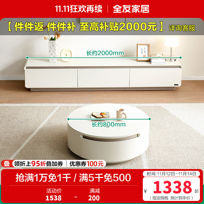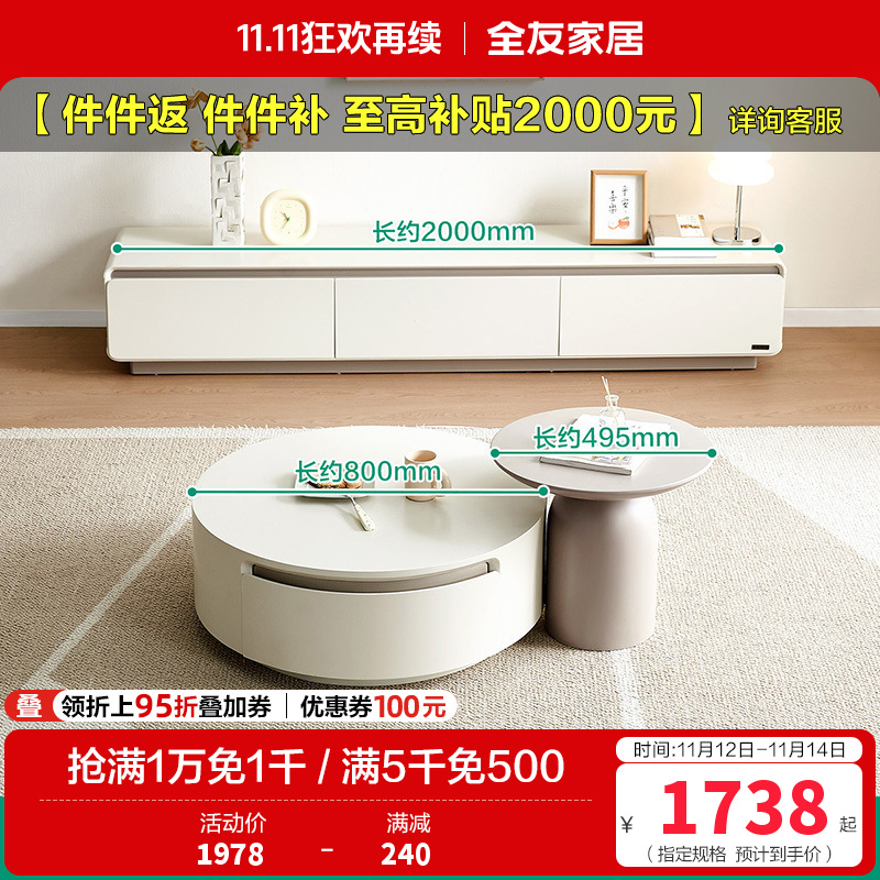 茶几电视柜DW1263 大圆茶几+电视柜主柜 详询客服领券每300用40,最高减3000¥1538.00热销中 -