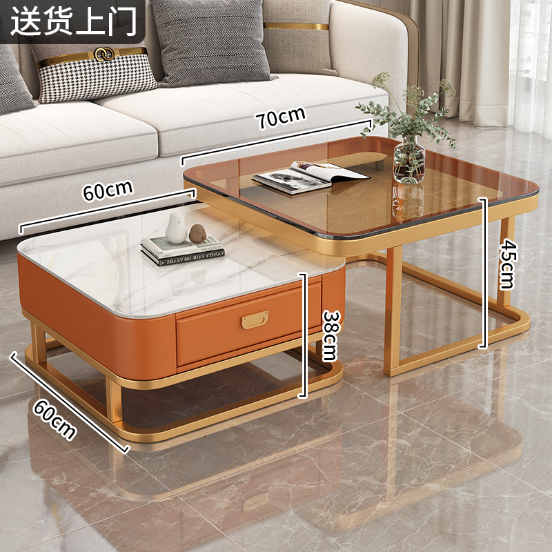 布欧格轻奢茶几家用 【金架+橙柜】60亮光雪山白+70钢化茶玻璃¥349.00热销中 -