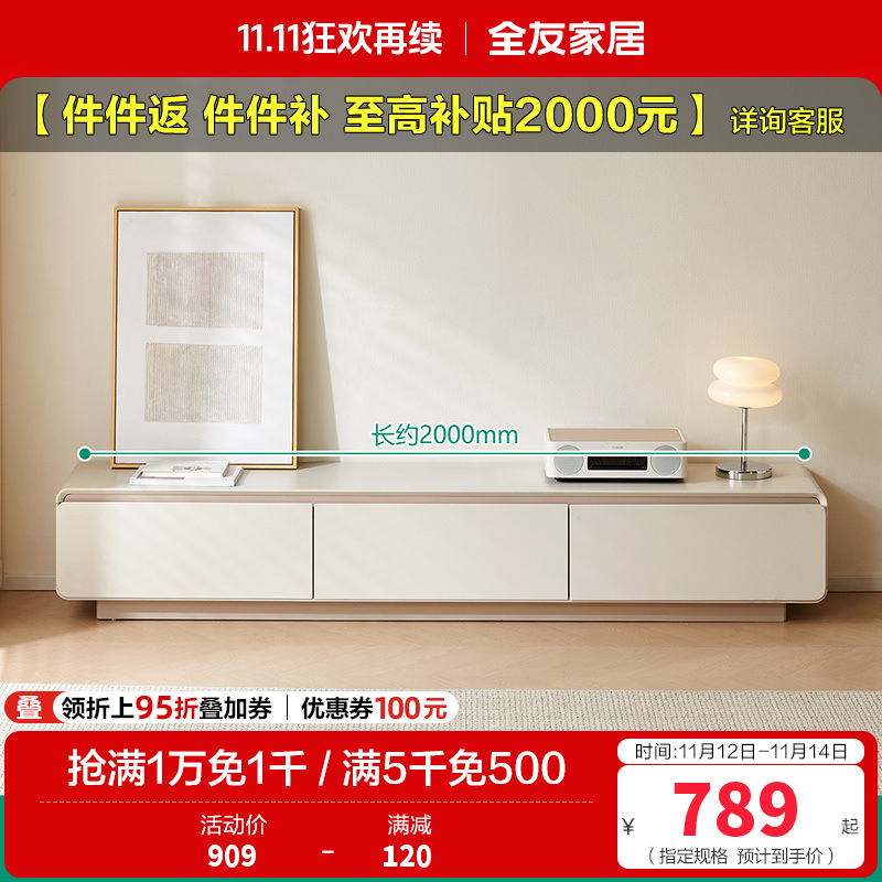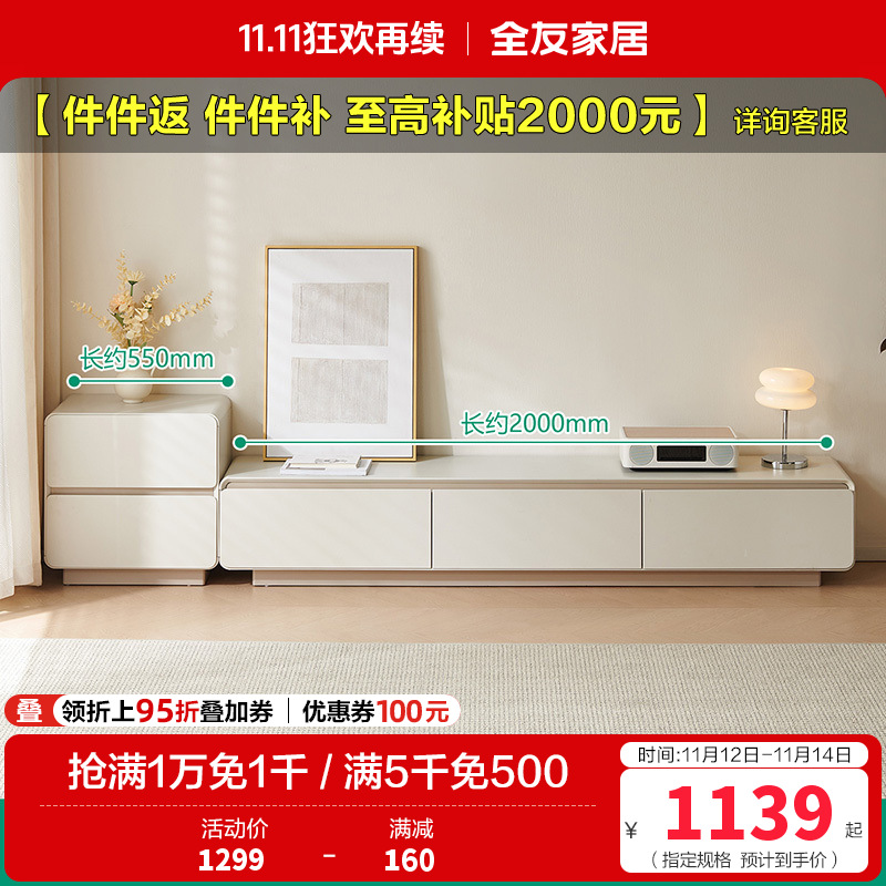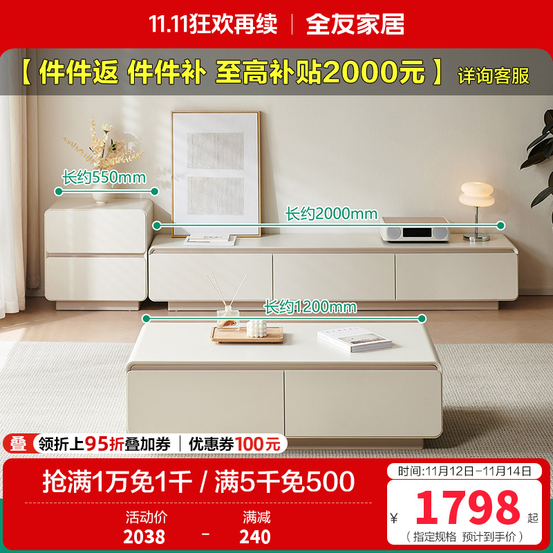 苏宁家具意式轻奢岩板茶几电视柜组合北欧简约客厅网红ins风边几-卡尔适1058茶几 2.0M电视柜 岩板桌面¥1880.00热销中 -