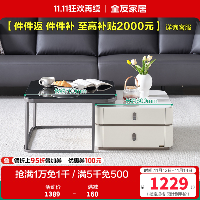 全友家居茶几670227(60天发货) 【钢化玻璃】黑色高茶几+白色矮茶几 详询客服领券每300用40,最高减3000¥1389.00热销中 -
