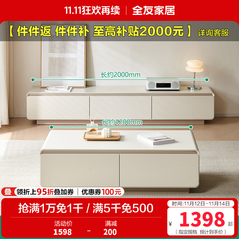 茶几电视柜DW1263 双抽茶几+电视柜主柜+附柜 详询客服领券每300用40,最高减3000¥2038.00热销中 -