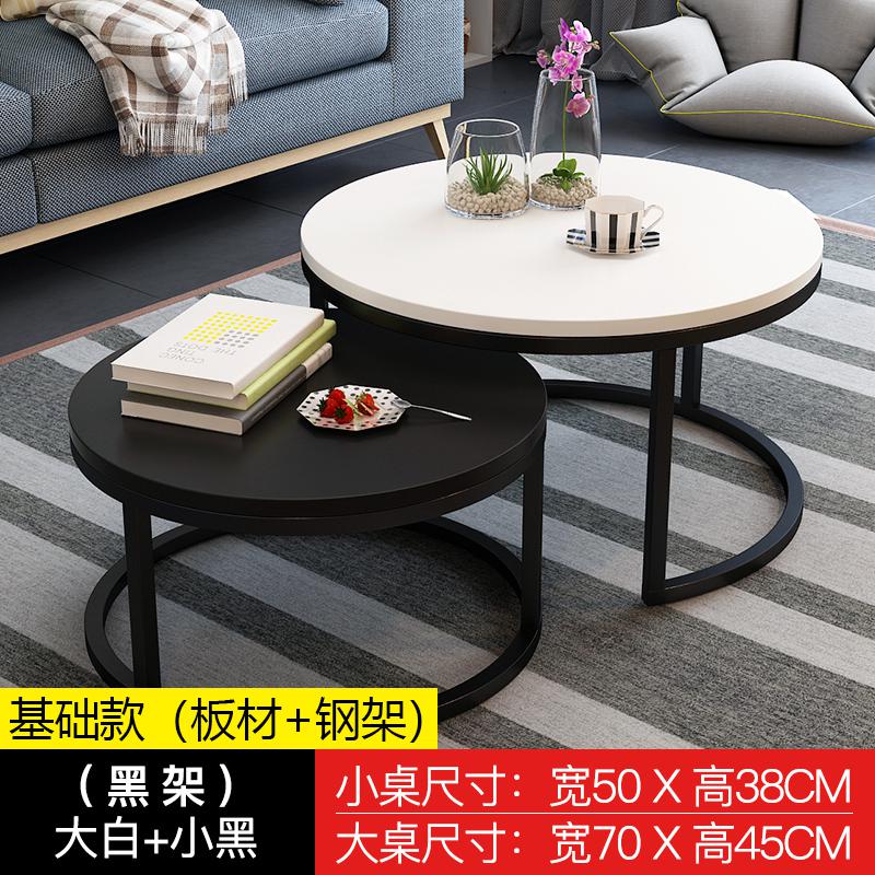 北欧茶几现代简约小户型简易小茶几家用客厅创意铁艺玻璃圆形茶几_39_941 黑架+大白小黑【板材款】组装¥286.00热销中 -