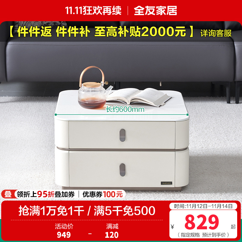 全友家居茶几670227(60天发货) 【钢化玻璃】白色矮茶几 详询客服领券每300用40,最高减3000¥949.00热销中 -