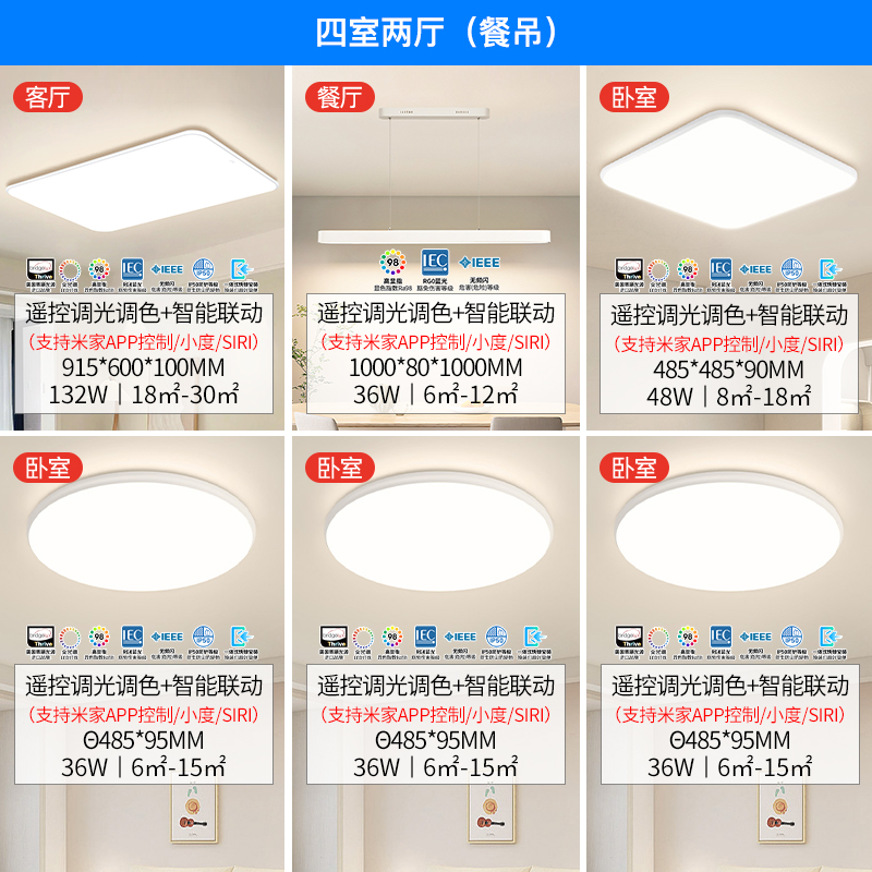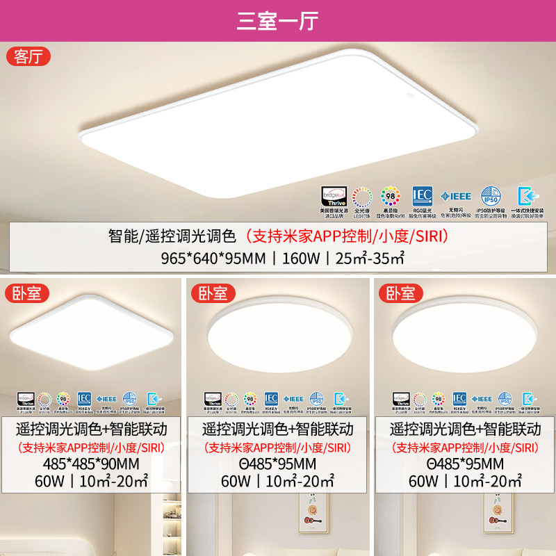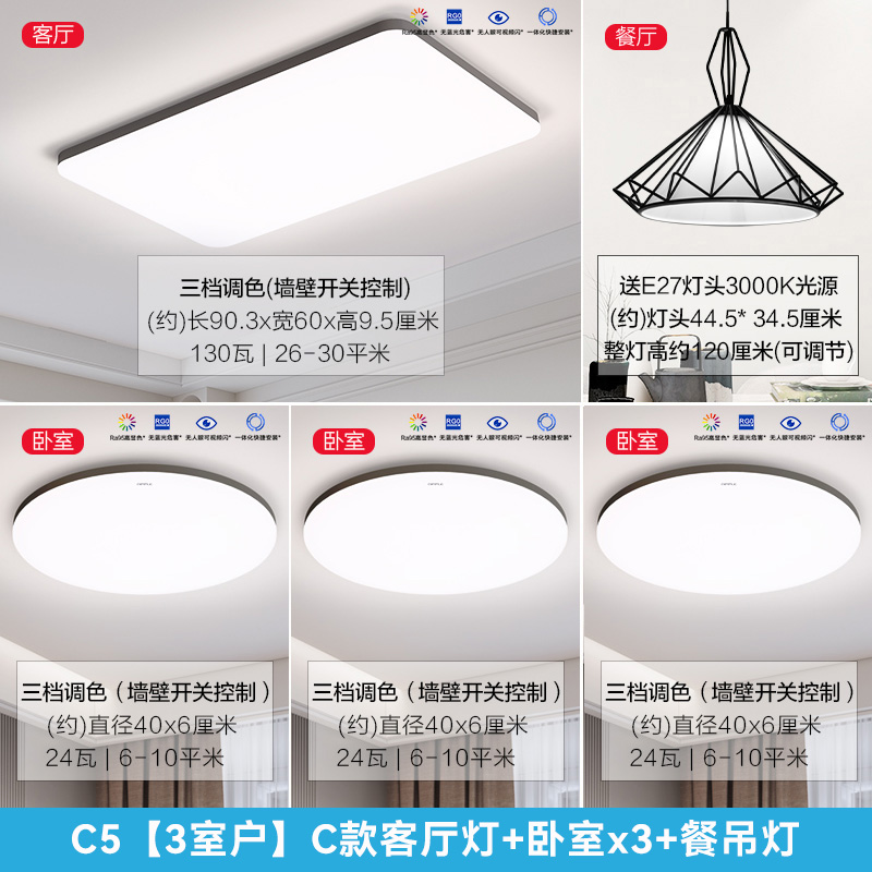 自营 欧普铭宇S吸顶灯TC C5【3室户】C款客厅灯+卧室x3+餐吊灯惠¥1455.00热销中186评价 100.0%好评