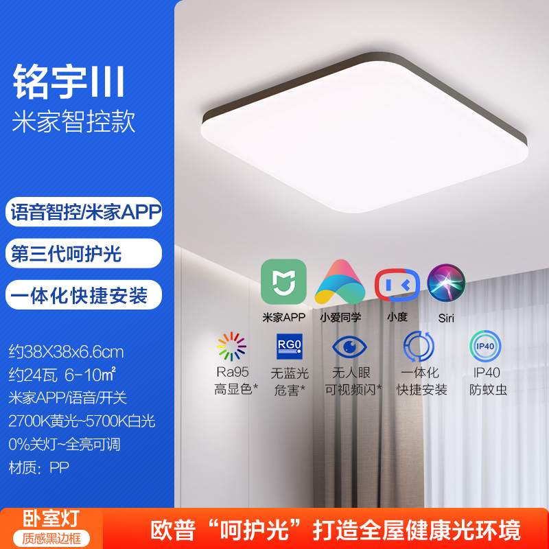 自营 欧普铭宇S吸顶灯TC A智控款方形卧室灯约40x40cm【升级呵护光三代】惠¥308.00热销中4评价 100.0%好评