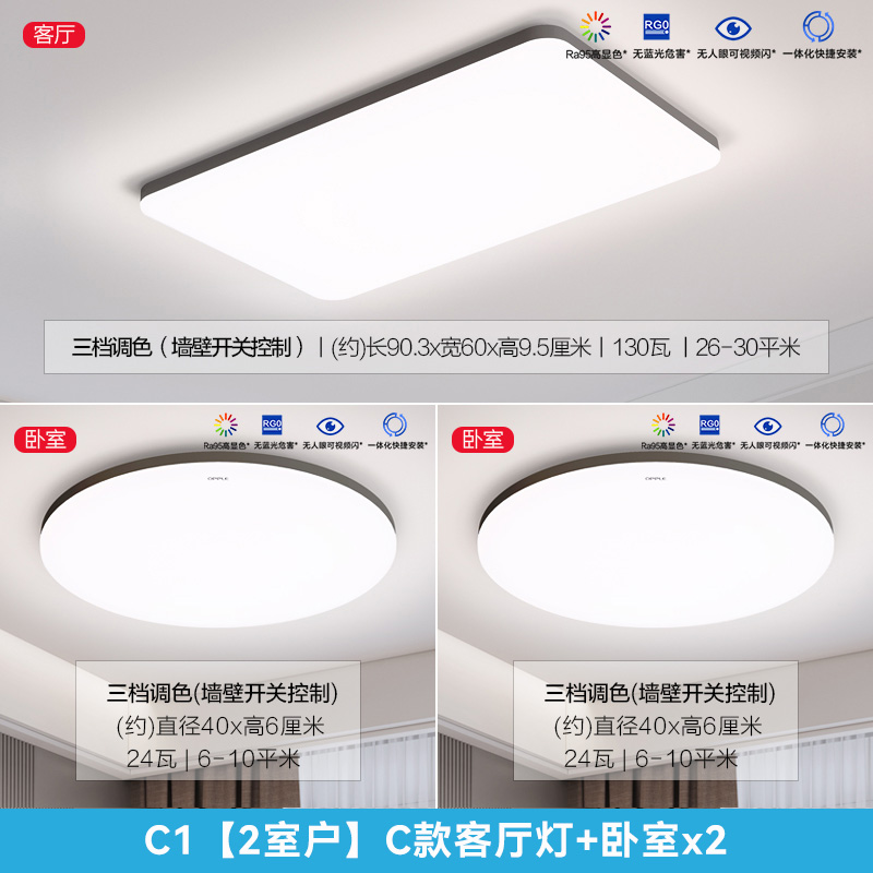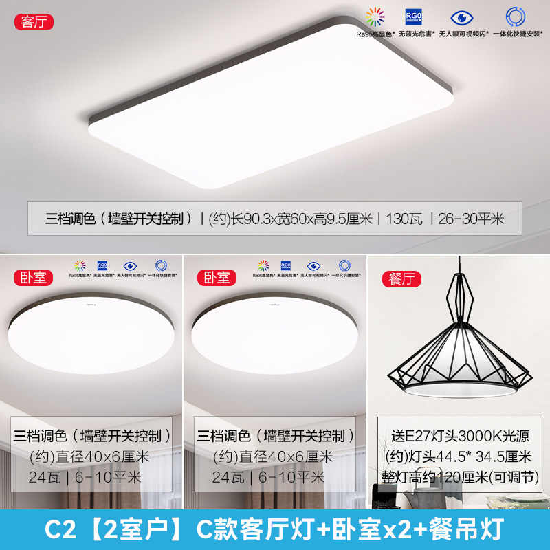 自营 欧普铭宇S吸顶灯TC C2【2室户】C款客厅灯+卧室x2+餐吊灯惠 领券无门槛使用,打8.0折,最高减3000元¥1245.00热销中1123评价 99.0%好评