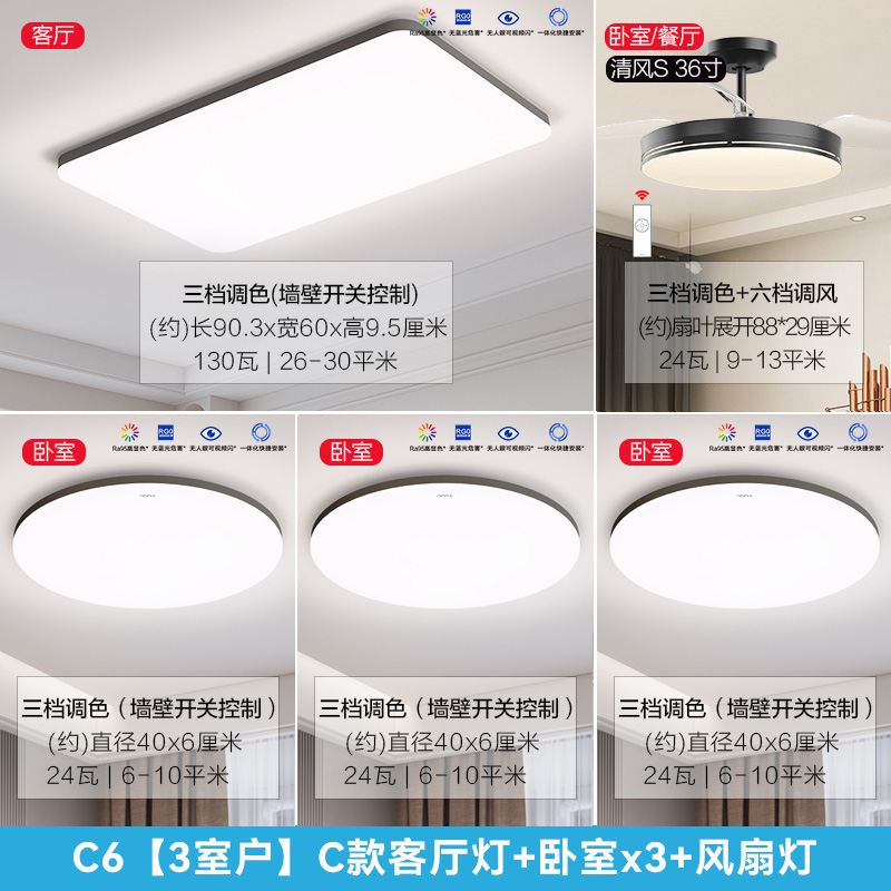 自营 欧普铭宇S吸顶灯TC C6【3室户】C款客厅灯+卧室x3+风扇灯惠 领券无门槛使用,打8.0折,最高减3000元¥1722.00热销中62评价 100.0%好评