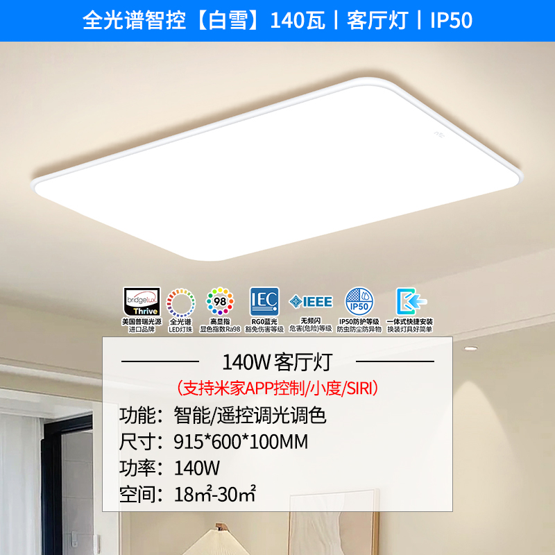 自营 雷士照明全光谱小白LED吸顶灯简约现代房间灯具语音智控卧室灯客厅灯 A普瑞全光谱【白雪】140瓦智能+IP50惠 领券满1用,最高减500元¥799.00热销中