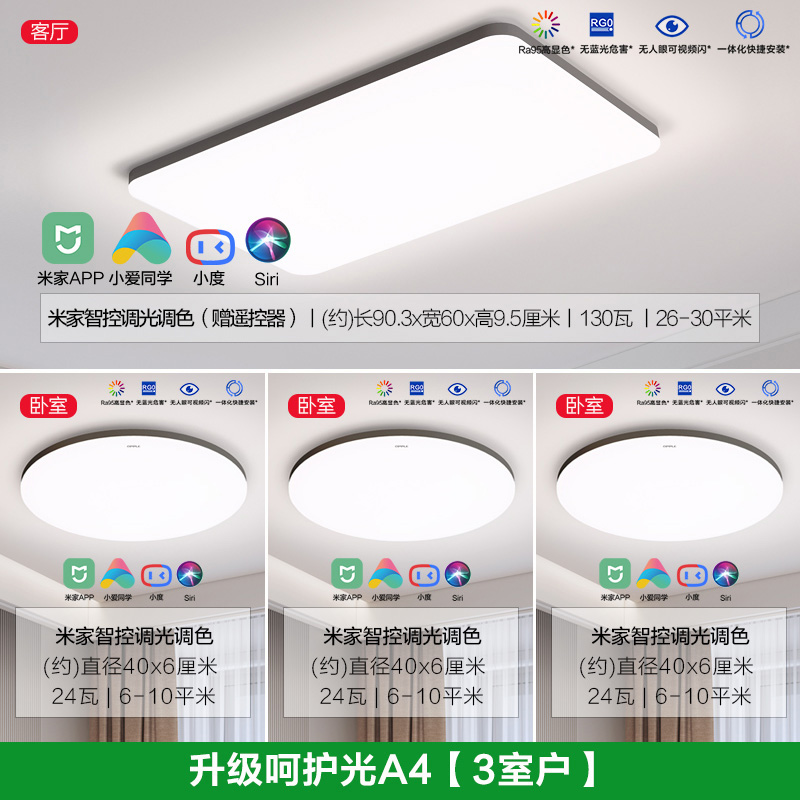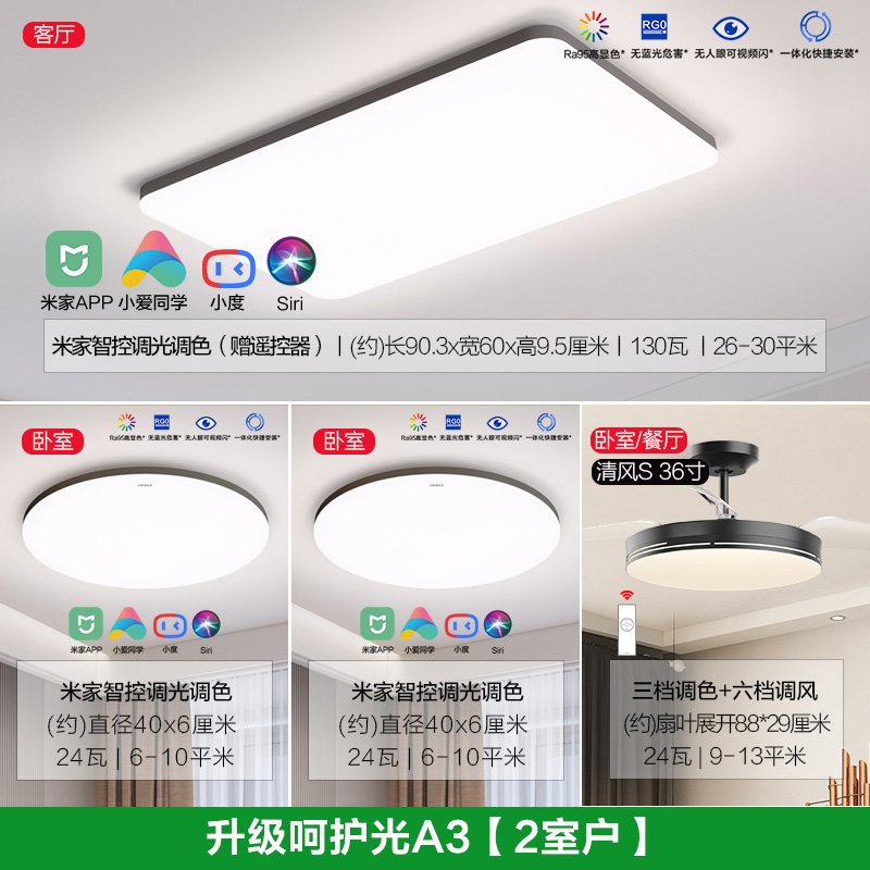 自营 欧普铭宇S吸顶灯TC 升级呵护光A3【2室户】客厅+卧室x2+风扇灯惠¥1690.00热销中1评价 100.0%好评