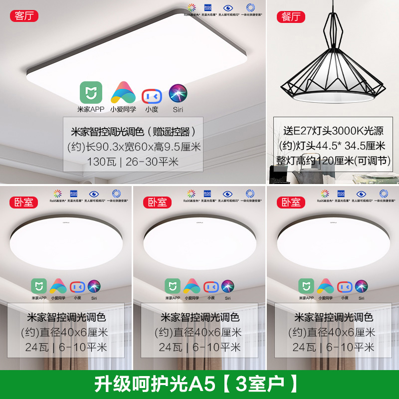 自营 欧普铭宇S吸顶灯TC 升级呵护光A5【3室户】客厅+卧室x3+餐吊灯惠¥1687.00热销中