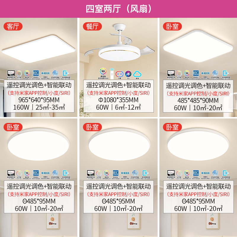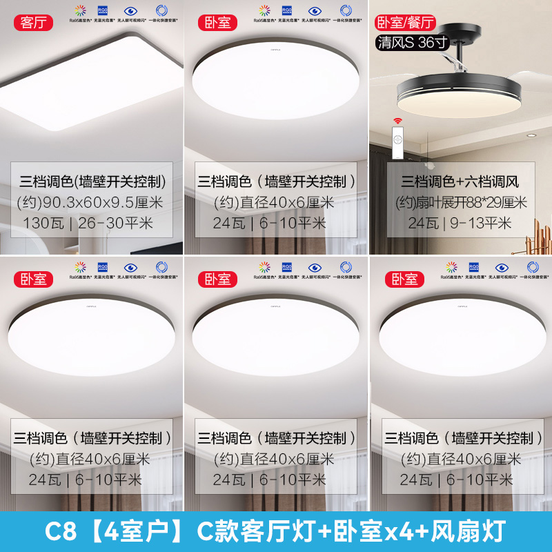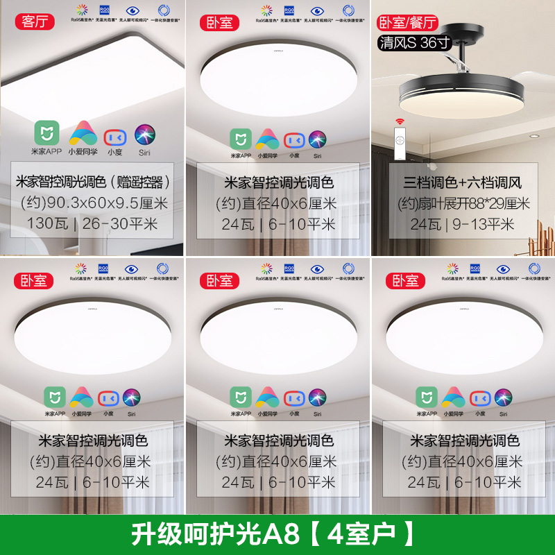 自营 欧普铭宇S吸顶灯TC C8【4室户】C款客厅灯+卧室x4+风扇灯惠¥1933.00热销中50评价 100.0%好评